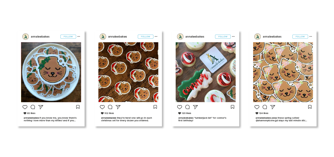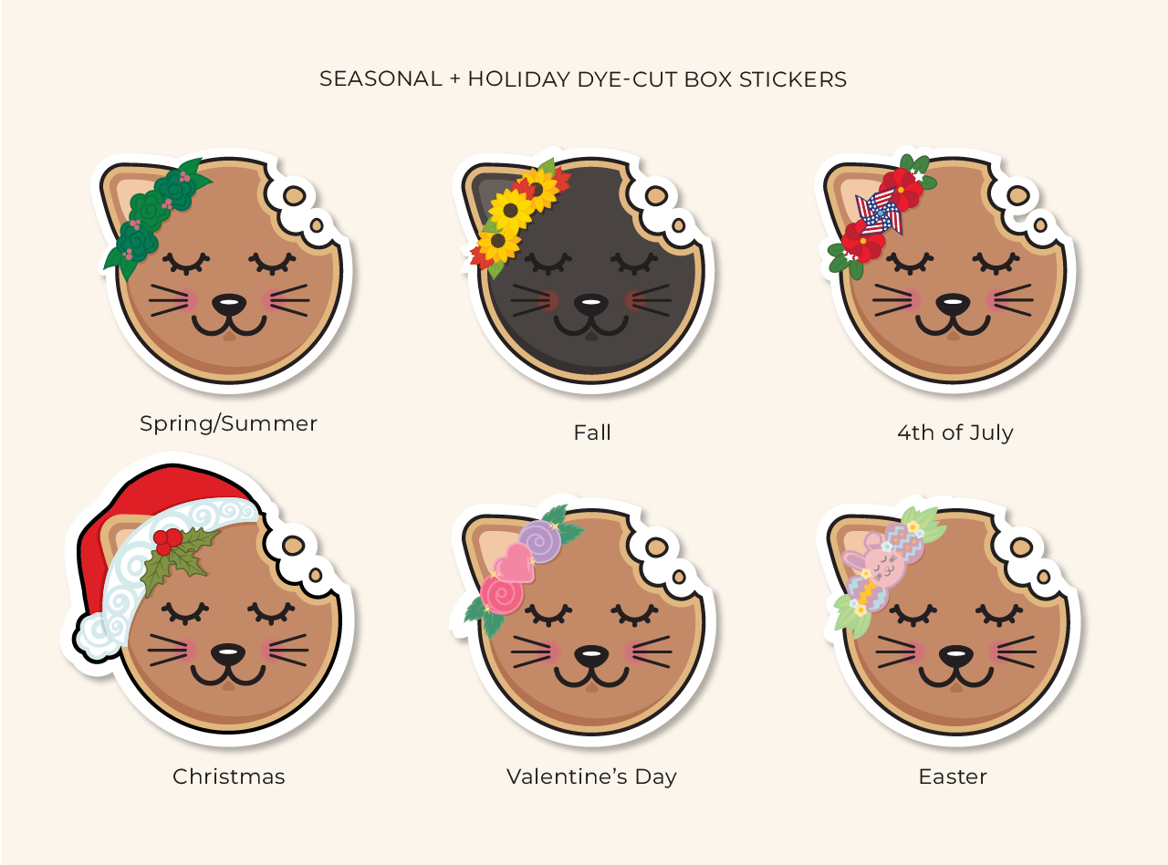 Annalee, a self-professed cat lady, wished to give her box-set clients a little something extra, and thus the Cat Cookie sticker was born. The sticker mimics a decoration style found in many of Annalee’s cookie sets.