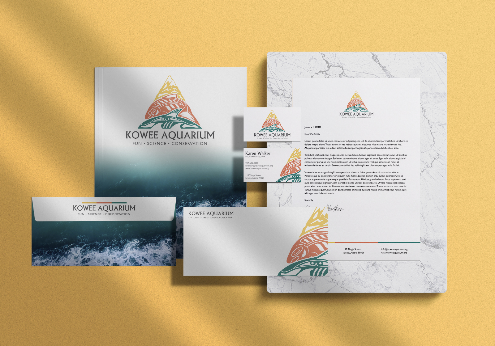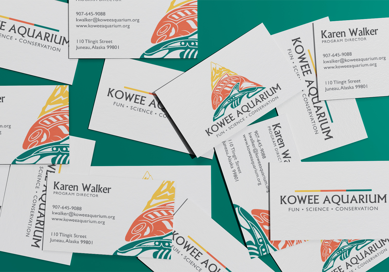 The Aquarium gets its name from Chief Kowee of the indigenous Auk Tlingits, the man who helped the city of Juneau co-founders Joe Juneau and Robert Harris on their quest to find gold. The art style of the native Tlingit people inspired the design of the Kowee Aquarium logo. Each color represents a part of Alaska; gold for the state mineral, salmon for the state fish, and jade for the state gemstone.