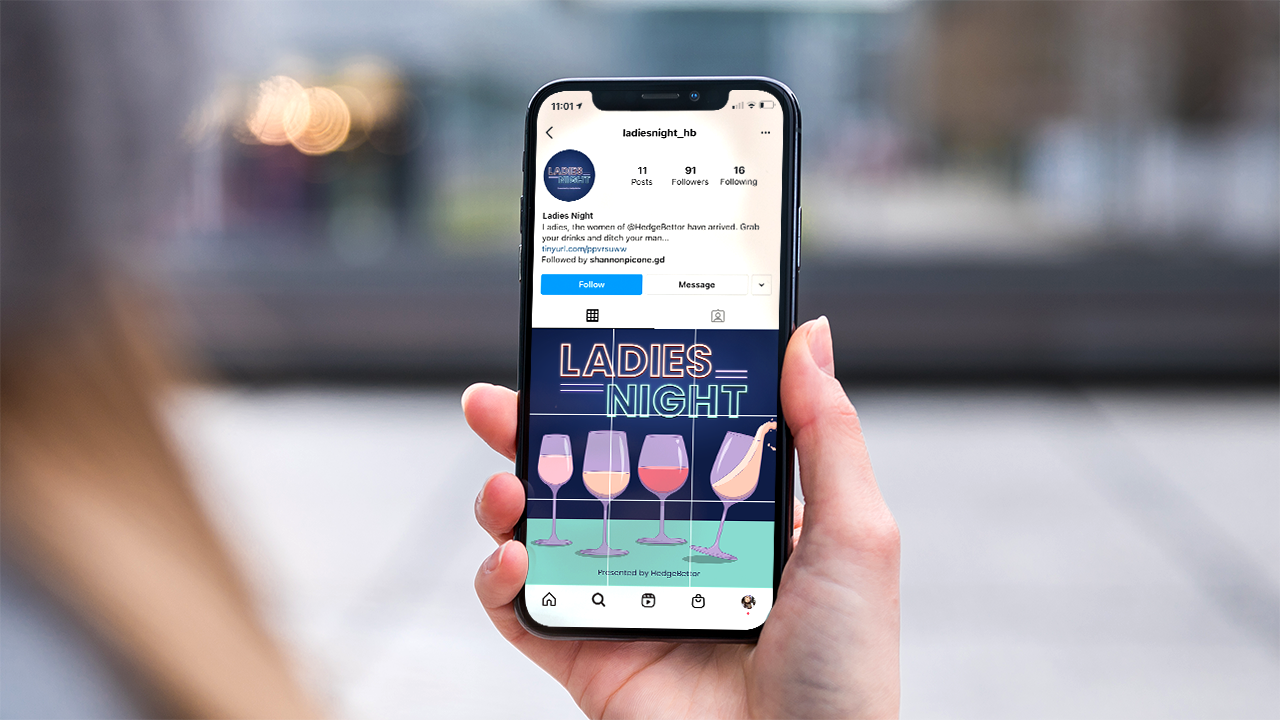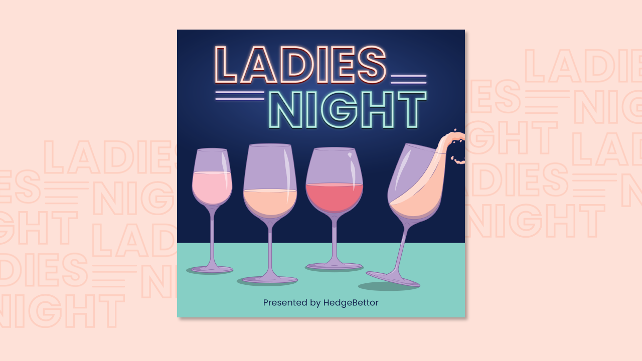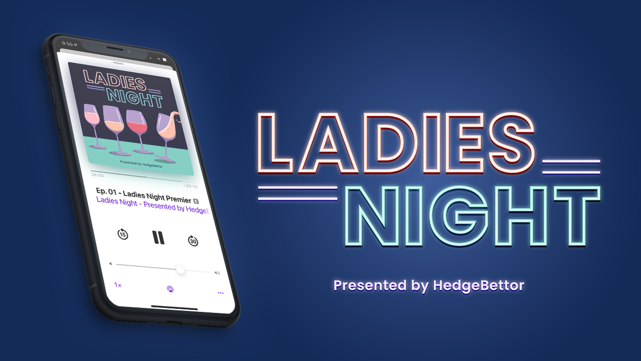 To gather a larger female audience Hedgebettor, a sports gambling/media company, launched the Ladies Night podcast. Ladies Night presented by HedgeBettor is hosted by four friends who discuss all things pop culture. The mix of pastel colors with a neon aesthetic separates the cover from other podcasts in its category. Each wine glass is different, just like each of the hosts.